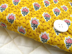 SOULEIADO ソレイアードのキルティング生地 プティット・フルール・デ・シャン 黄色(イエロー) 同ブランドの生地は、南フランスのプロヴァンス地方に伝わるプロヴァンス・プリントと呼ばれる伝統的なものです。ルーツは、はるか中国の絹の道に行き着きますが、インドを経て、17世紀にマルセイユからプロヴァンス地方に伝わりました。そこで、東洋的な文様・色彩にプロヴァンス独特の自然、民族的色彩が溶けあってさらに魅力的な織物となりました。