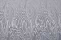 光沢感のある素材 ポリエステルジャガード モアレ 白。紗綾形よりも見る機会が少なくなったモアレ。木目のような柄ですね。このモアレという名前は、柄の名前でもあり、生地の名前でもあります。それだけ旧くは重用されてきた柄なんですね。生地としてのモアレは畝のある素材(タフタやグログランなど)ですが、こちらの商品はポリエステルのジャガードとなります。ジャガード生地は舞台衣装やよさこい、最近ではコスプレイヤーさんなどにお求めになられる事の多い素材です。その他にもディスプレイ用の敷物、仏具、イベント用など用途は様々です。