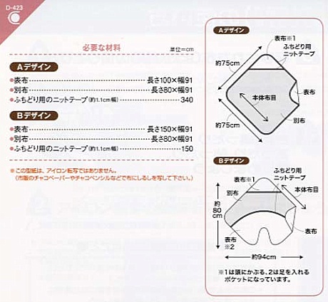 寒い日の寝相が心配な赤ちゃんの必需品。 ベビーキルティングやフリースなどで作る かんたん便利なスリーパー。 スリーパーの大きさ:タテ約69cm、ヨコ約50cm