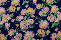 ラッセルレースプリント生地(ニット生地ではありません) 花柄 紺地×グリーン・ピンク他 【50cm単位】 (la696)