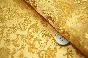 【お陰様で完売しました】チャイナドレス生地 中国民族衣装生地 竜と牡丹 金色・ゴールド(0635-12)