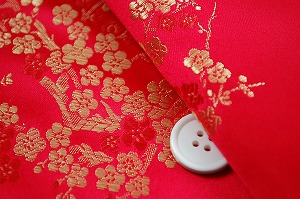チャイナドレス生地 中国民族衣装生地 梅柄 赤色・レッド(0635-79)