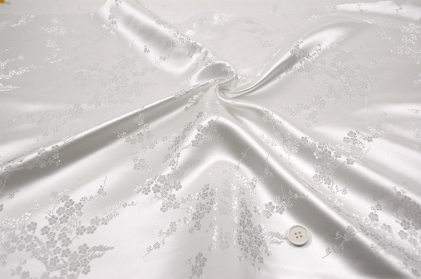 チャイナドレス生地 中国民族衣装生地 梅柄 白色・ホワイト(0635-82)