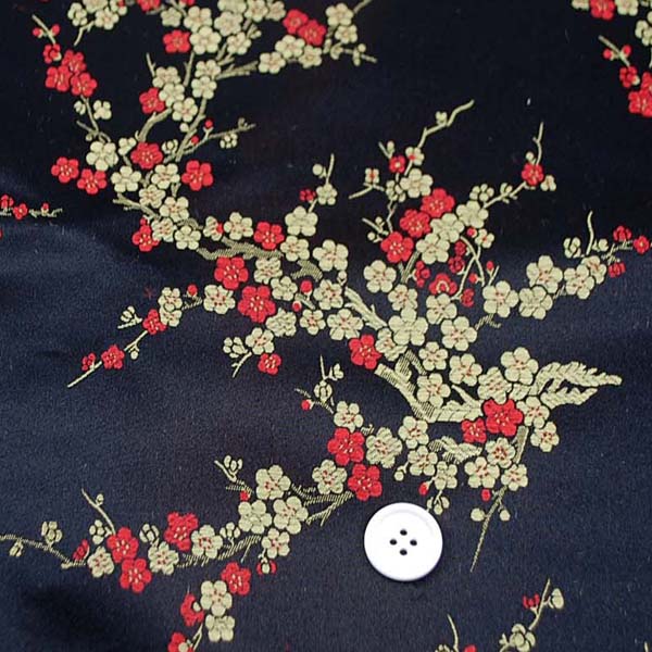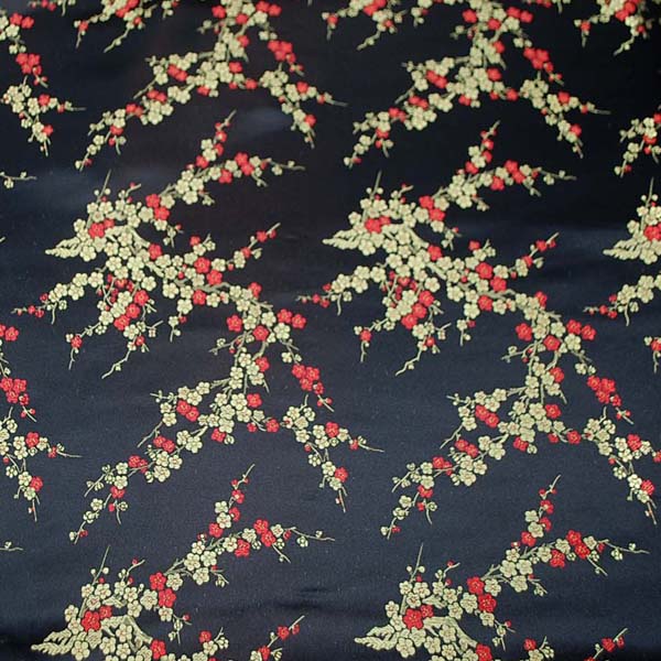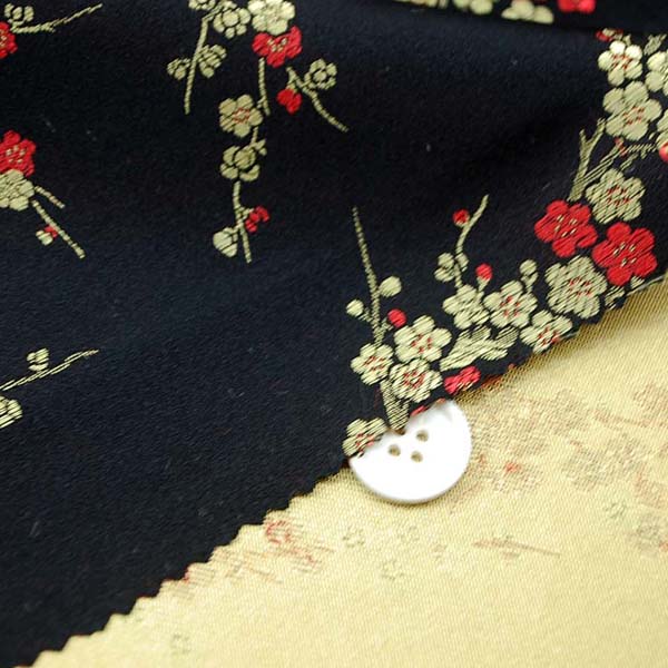 【お陰様で完売しました】チャイナドレス生地 中国民族衣装生地 梅柄 黒地に赤と金(0635-83)