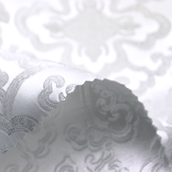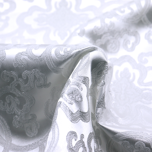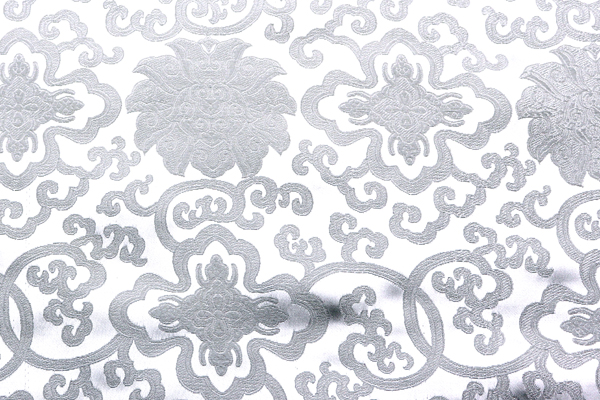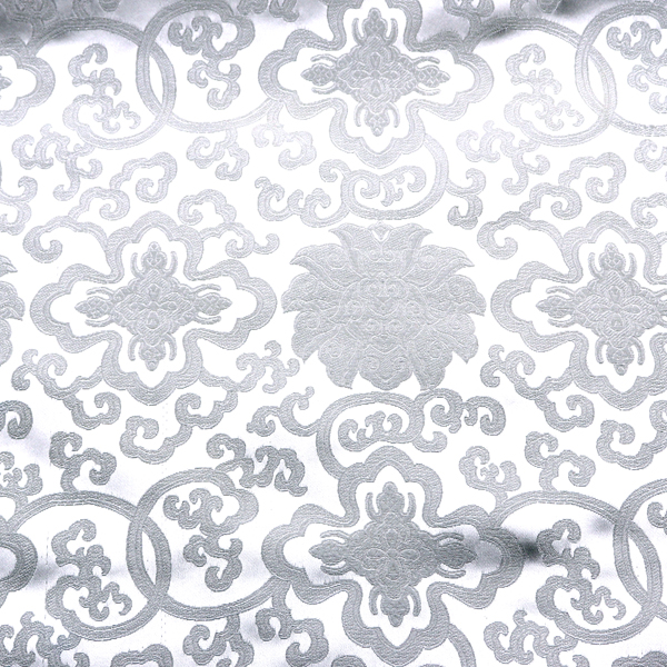 チャイナドレス生地 中国民族衣装生地 蓮と唐草 白 (0635-98)