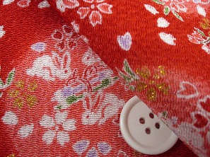 ちりめん友禅 金彩生地 可愛い小桜柄 桜の花びら うさぎ柄 赤色 約70cm×約50cmカット (0647-26)