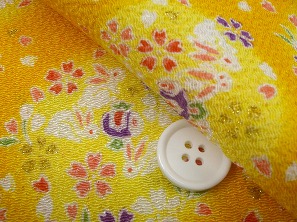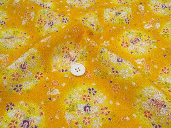 ちりめん友禅 金彩生地 可愛い小桜柄 桜の花びら うさぎ柄 黄色地 約70cm×約50cmカット (0647-29)