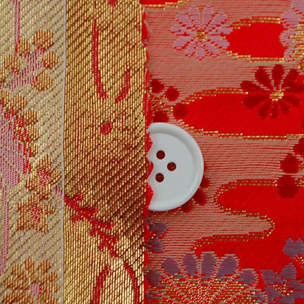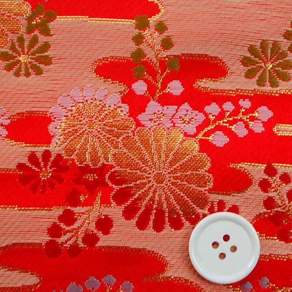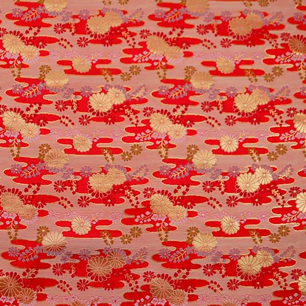 金襴生地 寿三丁 菊と江霞(えがすみ) 朱赤・金 (0651-02)