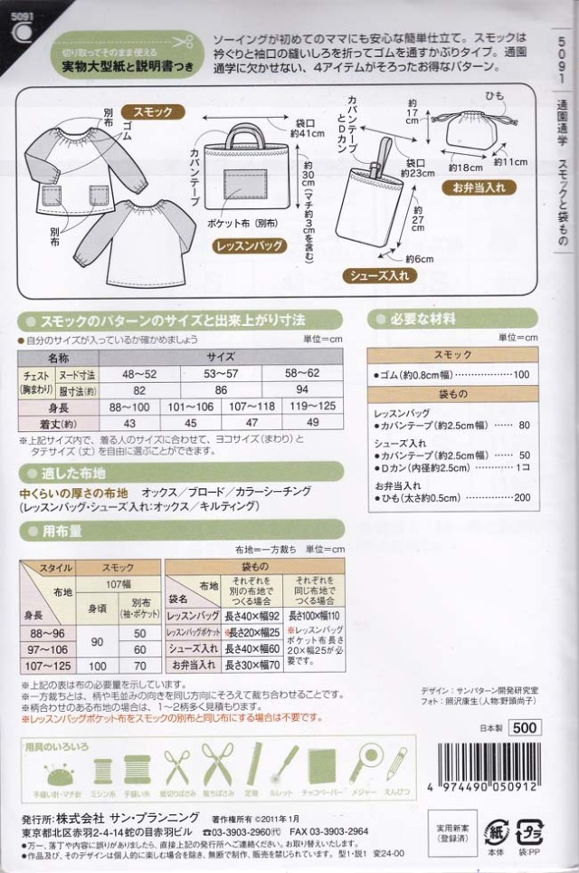 廃番シリーズ フィットパターンSUNサン 通園通学スモックと袋もの (5091)消費税の都合から写真の表示価格と違う場合があります