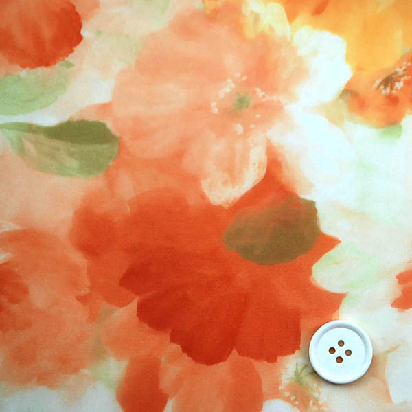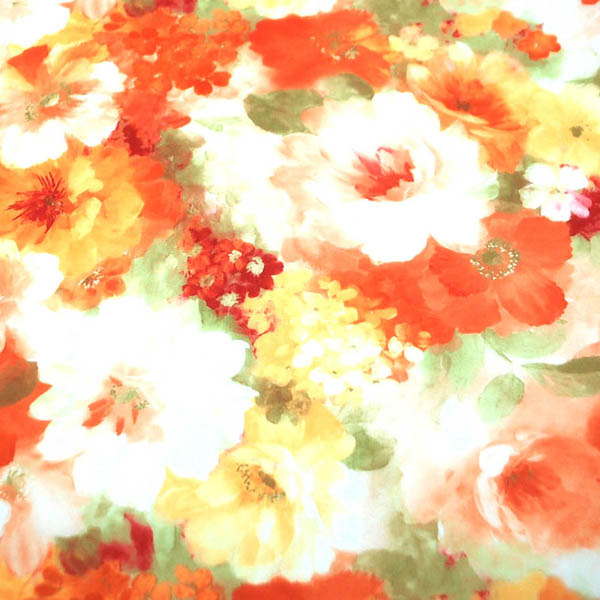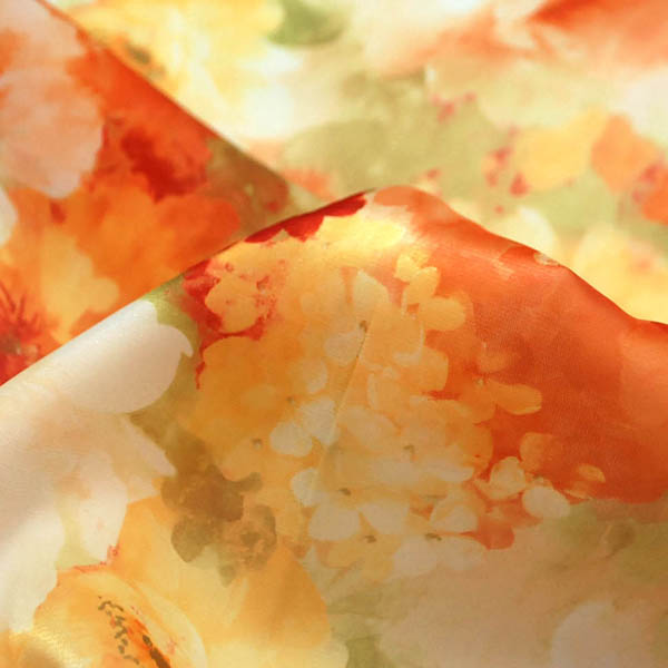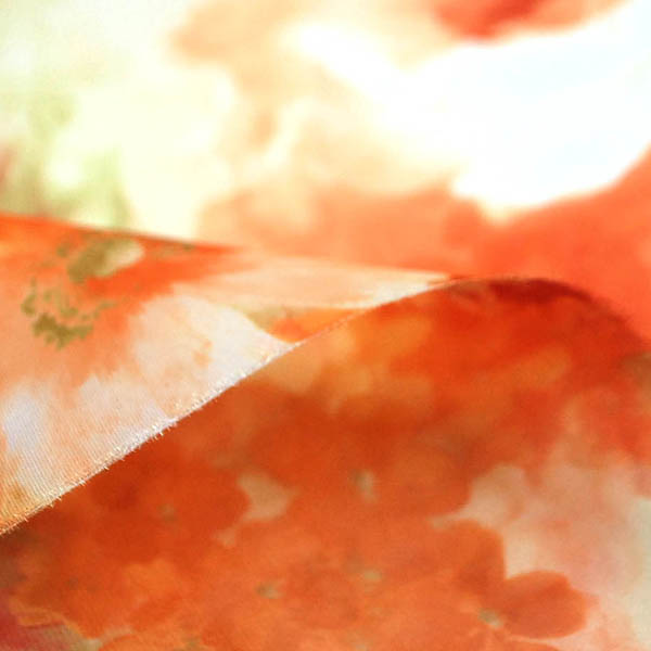 高級感あふれる ポリエステルサテンオーガンジープリント 花柄 オレンジ (5607-23)