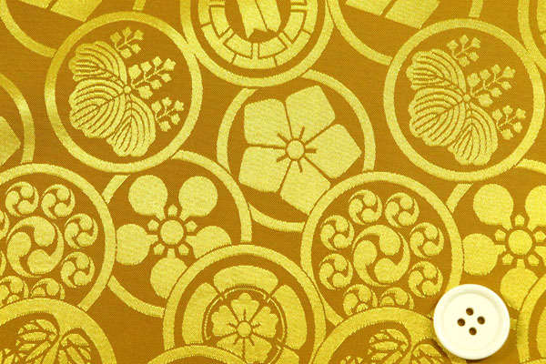 明智家の桔梗文も入ってるぞ! よさこいや舞台衣装に最適な カチオンジャガード 家紋柄 金 (5614-43)