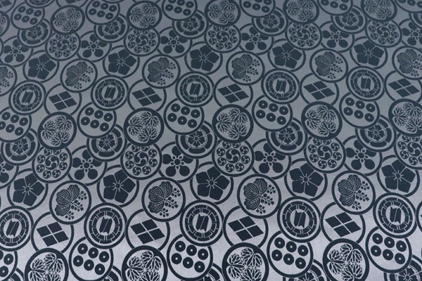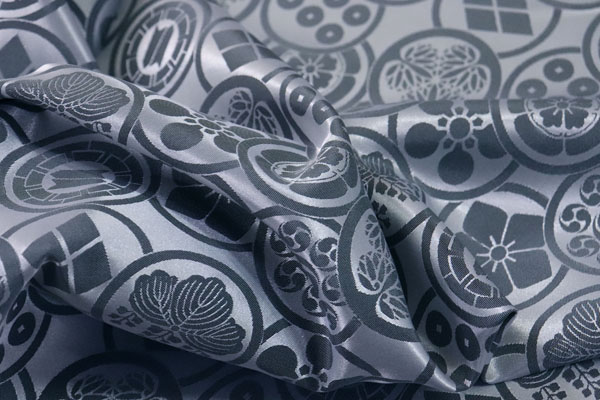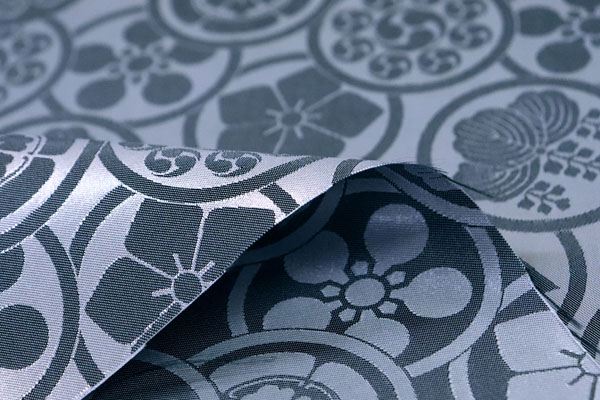 明智家の桔梗文も入ってるぞ! よさこいや舞台衣装に最適な カチオンジャガード 家紋柄 銀 (5614-44)